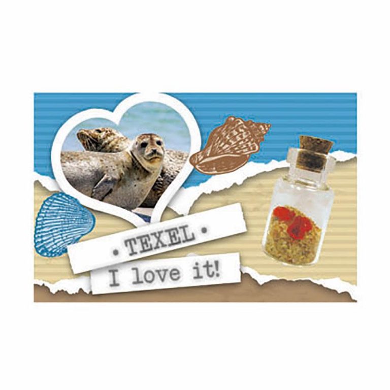Magneet flesje zand en hartjes Texel